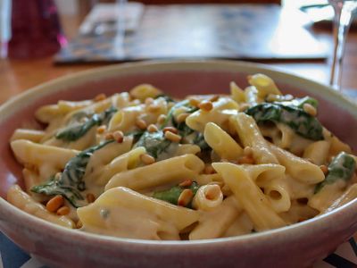 Pasta with pistachio pesto & burrata